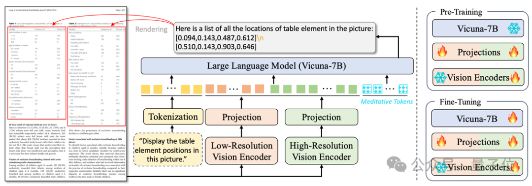 其中,高分辨率视觉编码器用于2560x1920的高分辨文档图像,可以提供丰富的细粒度视觉信息;