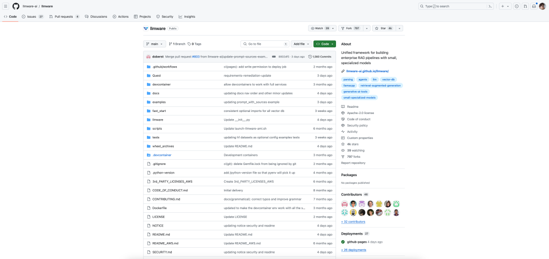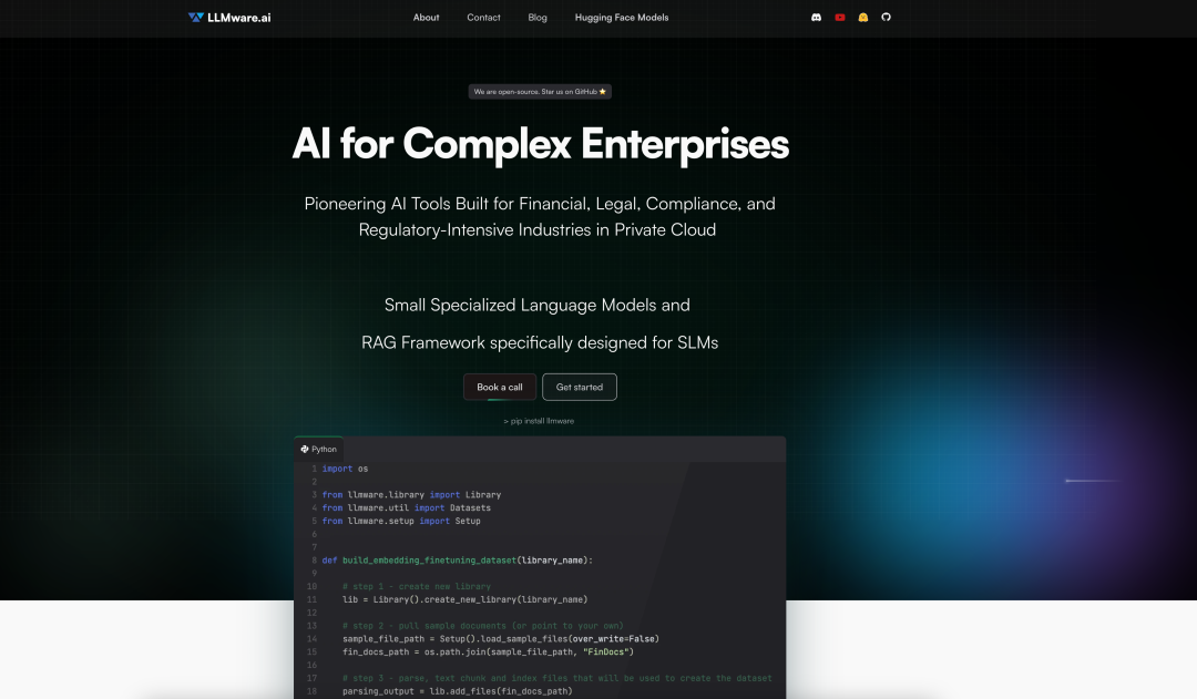 llmware提供了一个统一框架,用于构建基于大型语言模型(LLM)的应用(例如,RAG,代理),这些应用使用小型、专业化的模型,可以私有部署,安全地与企业知识源集成,并以成本效益的方式为任何业务流程进行调整和适应。