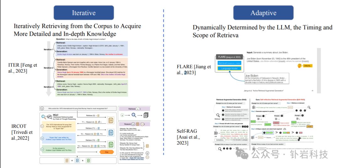 在检索流程方面,可以有Iterative迭代式检索,也可以Adaptive自适应检索