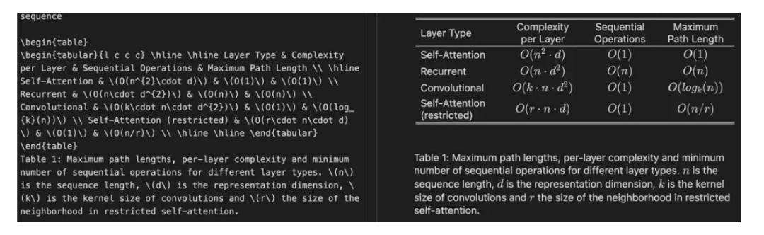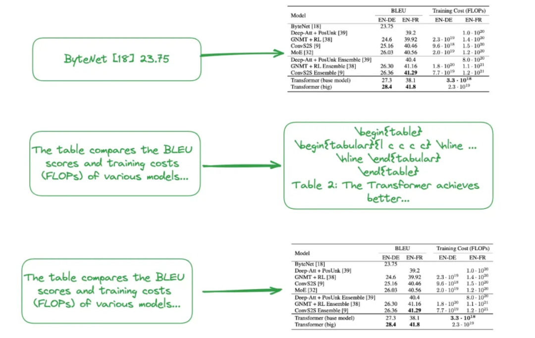 Nougat 解析公式表格的能力令人印象深刻,也能对表格标题进行关联(解析出来的表格式 LaTeX 格式),比如下面这个例子: