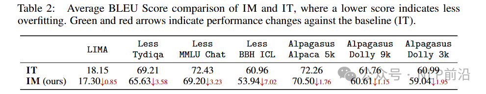 实验结果一: - 上图中,数据集长度和大小的变化产生的变化,一个合理的解释是,如果response很短并且只有几个训练样本,则模型更容易记住response,因此IM,在损失中对更多的模型输出进行建模,可以帮助减少过拟合。