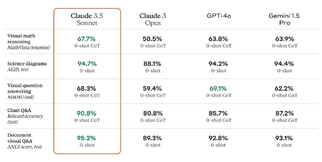 Claude 3.5 Sonnet 在多模态上更强了,对于需要视觉推理的任务,比如解读图表和图形,比以往更6,甚至可以非常好的处理万年老图中的文字。 其他