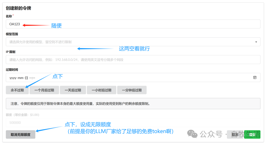 第三步 docker compose执行会有段时间,失败了就多搞几次。有梯子一般很快。容器创建成功后,docker desktop里可以看到如下: 按照提示注册用户(本地运行,随便输个邮箱即可),然后登录。依旧是Windows终端,选好路径,依次执行: gitclonehttps://github.com/songquanpeng/one-api.gitcdone-apidocker-composeup-d[+]Running26/26✔one-api4layers[⣿⣿⣿⣿]0B/0BPulled82.6s✔d25f557d7f31Alreadyexists0.0s✔1b5b003f9dfbPullcomplete9.3s✔191451707000Pullcomplete69.7s✔a2827533ea71Pullcomplete10.9s✔redis9layers[⣿⣿⣿⣿⣿⣿⣿⣿⣿]0B/0BPulled33.0s✔a3ed95caeb02Pullcomplete0.7s✔7059585c469ePullcomplete4.2s✔782c76bb9e67Pullcomplete0.7s✔706514fbad74Pullcomplete0.9s✔62f9861bf413Pullcomplete17.2s✔d9a5cf315f9bPullcomplete1.2s✔43310c2277ffPullcomplete1.6s✔b3e03532a808Pullcomplete1.9s✔9c59e8378f86Pullcomplete2.5s✔db10layers[⣿⣿⣿⣿⣿⣿⣿⣿⣿⣿]0B/0BPulled244.6s✔558b7d69a2e5Pullcomplete120.0s✔599b67b0dd6aPullcomplete15.3s✔50314d46ce2bPullcomplete23.6s✔494babc92263Pullcomplete57.4s✔02548e6f2dbfPullcomplete61.6s✔a9e5e2637e0dPullcomplete64.5s✔657b198fe6b7Pullcomplete208.8s✔215a2b0eabbfPullcomplete70.8s✔377a4c7a89c5Pullcomplete224.2s✔4bfe599fe218Pullcomplete121.4s[+]Running3/4-Networkone-api_defaultCreated2.6s✔ContainerredisStarted1.9s✔ContainermysqlStarted1.9s✔Containerone-apiStarted1.9s 容器创建成功后,docker desktop里可以看到如下:浏览器输入:http://localhost:3000/,注册用户,root用户默认密码 123456 ,记得修改。 总体思路,在one-api中配置若干个LLM大模型(默认你已经有相应的key了),然后在Dify系统配置中,添加OpenAI-API-compatible模型(使用one-api中配好的)。 获取令牌,点击“复制” 获取到类似如下的Key,备用。sk-X*******************************************************9