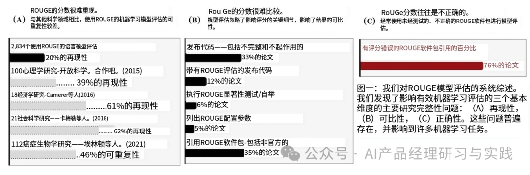 然而,使用这些传统的基准和指标存在一些缺陷。 首先,这些指标与人类判断之间的相关性很差。BLEU、ROUGE 等与人类评估流畅性的方式呈负相关。它们还表现出与人类充分性得分的中等到较低的相关性。特别是,BLEU 和 ROUGE与需要创造力和多样性的任务相关性较低。 其次,这些指标通常对更广泛的任务适应性较差。将针对一项任务提出的指标应用于另一项任务并不总是明智的。例如,BLEU 和 ROUGE 等精确匹配指标不太适合抽象摘要或对话等任务。由于它们基于输出和参考之间的 n 元语法重叠,因此对于可能有多种响应的对话任务来说,它们没有意义。输出与参考的 n 元语法重叠可以为零,但仍是良好的响应。 第三,这些指标的可重复性较差。即使对于相同的指标,不同的研究也会报告高方差,这可能是由于人类判断收集或指标参数设置的变化所致。另一项针对 2,000 项研究的ROUGE 分数的研究发现,分数难以重现、难以比较,而且常常不正确,因为评估通常是使用未经测试的、不正确的 ROUGE 实现进行的。
