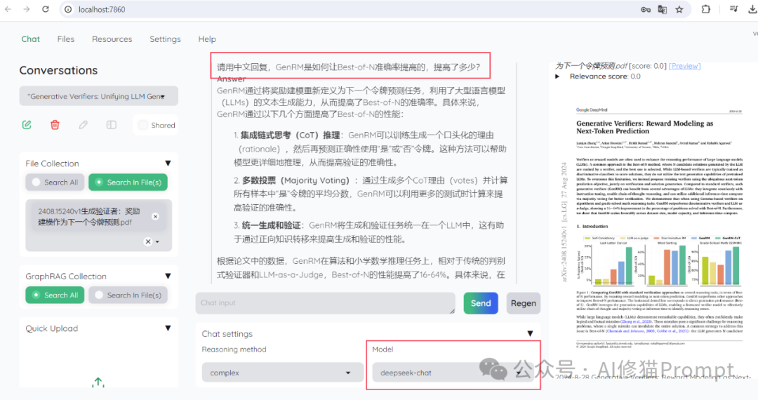 设置完Setting这一步,还需要根据自己的需求对Reasoning setting中的各种Prompt进行定义,这就看你喜好了。之后,就可以去第3步,上传PDF文件进行index了,最后一步第4步,才是在首页Chat。经过您精心调整参数,相信您也一定可以看到如下项目首页类似的结果。