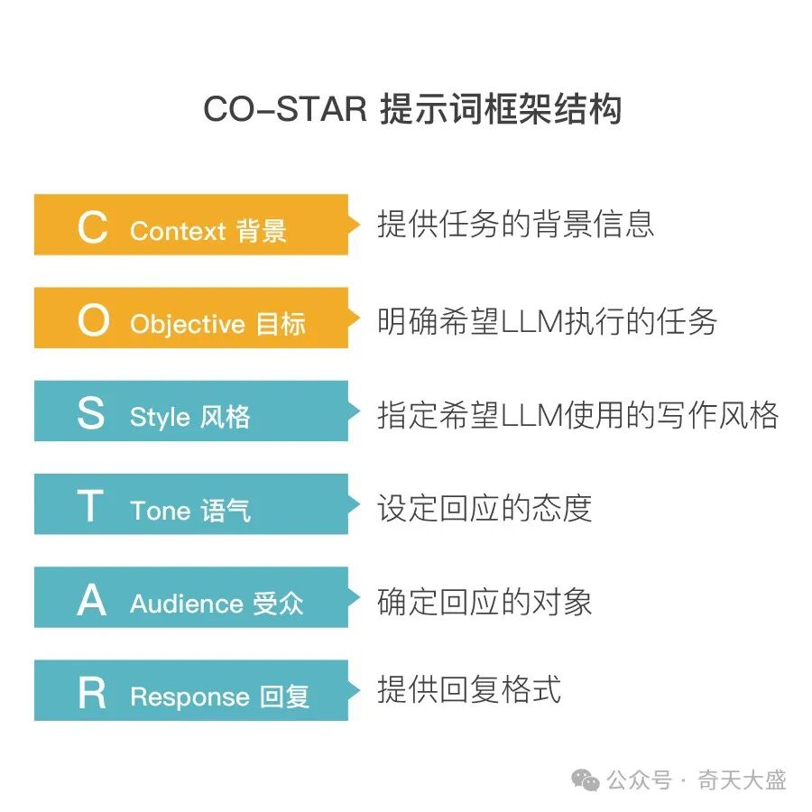 CO-STAR 框架由新加坡政府科技局的数据科学与人工智能团队创意提出,是一个优化提示设计的实用工具。通过结构化的提示设计,CO-STAR框架综合考虑了影响LLM响应质量的关键因素,确保输出结果的准确性和相关性。