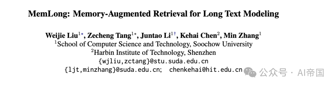 论文标题:MemLong: Memory-Augmented Retrieval for Long Text Modeling