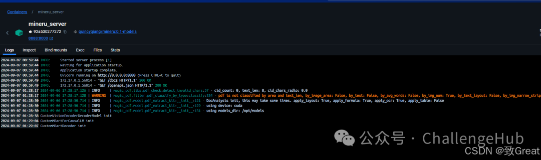 docker run -itd --name=mineru_server --gpus=all -p 8888:8000 quincyqiang/mineru:0.2-models