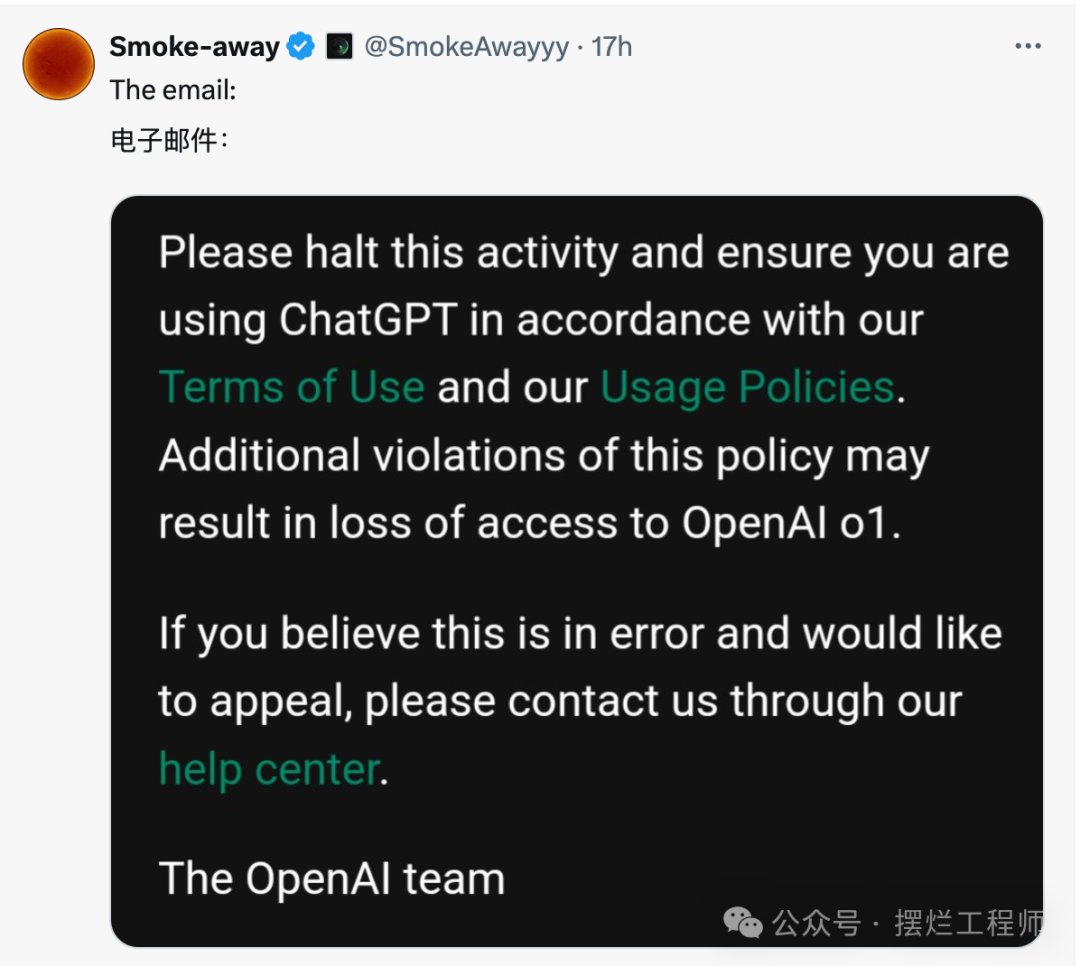 - OpenAI有明确的使用条款和规范,频繁探讨某些敏感话题可能被视为违反这些规定,因此他们会采取措施警告用户。