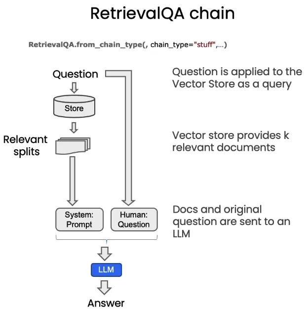 • RetrievalQA Chain 则专注于将问题与检索到的相关信息结合,直接交由大语言模型生成答案。这种方法流程简单直接,虽然灵活性和针对性略低,但由于其效率高度依赖于检索内容的质量,非常适合处理通用问答场景。