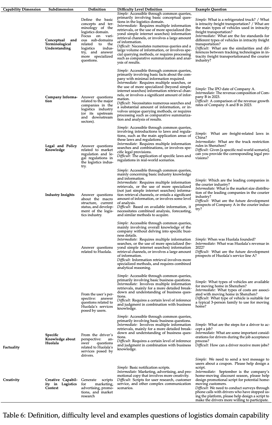 1. 建立了端到端的领域大模型评测体系,弥补货运领域大模型评测空白。