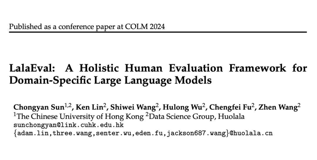 LalaEval: A Holistic Human Evaluation Framework for Domain-Specific Large Language ModelsingFang SC", system-ui, -apple-system, "system-ui", "Helvetica Neue", "Hiragino Sans GB", "Microsoft YaHei UI", "Microsoft YaHei", Arial, sans-serif;letter-spacing: 0.544px;background-color: rgb(255, 255, 255);text-align: left;line-height: 1.5em;">论文链接:https://arxiv.org/pdf/2408.13338LalaEval 一共分为五部分:领域范围界定、能力指标构建、评测集生成、评测标准制定、结果统计分析。下图是这五个部分如何部署运作的总览。