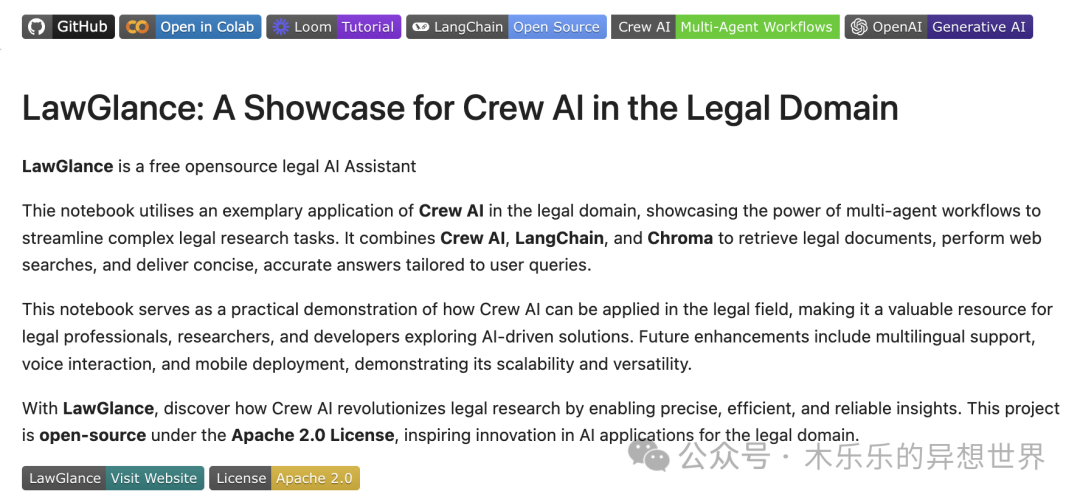 而,LawGlance 项目展示了如何将先进的 AI 技术应用到专业领域。通过多个 AI "专家"的协作,实现了准确、可靠的法律问答服务。这个开源项目不仅为法律服务提供了新的可能,也为其他专业领域的 AI 应用提供了有价值的参考。 github 项目地址:https://github.com/lawglance/lawglance