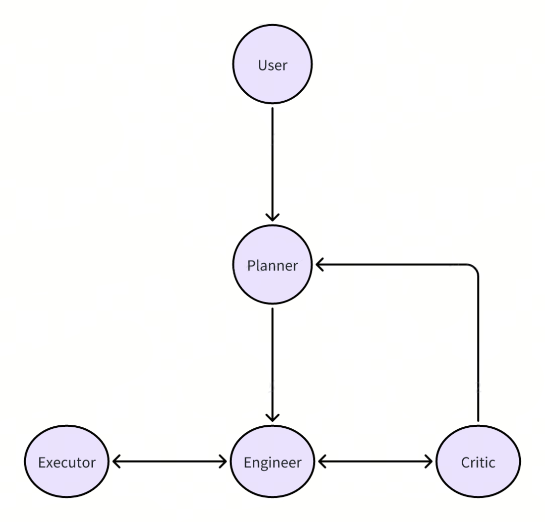目前奇智平台已支持文字形式的输入输出,通过大模型调用各类工具等功能。奇智平台在单个Agent应用的基础上, 支持用户构建Multi-Agent应用。平台支持将用户自建Agent和在奇智平台创建的Agent,接入同一个Agent Group中解决同一问题。平台还提供控制调控Agents之间通信合作的功能,以及保存和载入短期历史Group信息的功能。在同一个Group的Agents可以共享信息,互相传递消息,不断迭代,最终解决问题。每个Group实例之间的历史信息互相隔离,提供独立的工作环境,Group中的代理Agent是原有Agent在新的环境/Group的代理,负责在Group中和原Agent之间的消息传递。 同时我们还可以在对使用的Agent功能了解的情况下,通过规定Agent之间的工作顺序来有效集成Agent功能完成任务。如下图所示,在奇智创建Group时可以使用以下参数设置用字典构建一个工作顺序图:我们有Planner, Engineer, Executor,Critic这几个Agents, Planner可以做计划, Engineer可以写代码,Executor可以执行代码, Critic可以提出意见。希望的工作顺序是Planner先做计划,由Engineer来发出指令,然后可以是Executor来执行或者Critic提出意见,Critic可以将结果返回给Planner或者让Engineer重新计算,Executor可以将执行结果提交给Engineer, Planner可以选择需不需要重新制定计划。下面的参数设置中key,values分别代表运行顺序箭头的两端。 "relationship_graph": { "planner": ["engineer"], "engineer": ["executor", "critic"], "critic": ["engineer", planner], "executor": ["engineer"] }