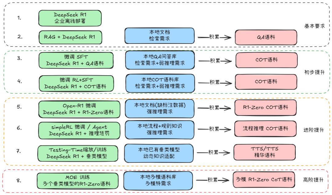 DeepSeek R1推理相关项目源码分析里面谈到了R1相关的开源项目大爆发。其中很多方向都是企业需要增强的点。