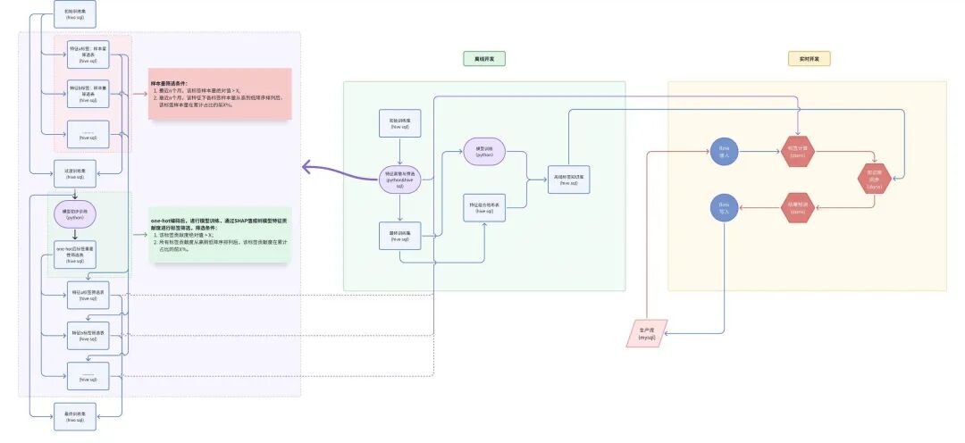 • 通过上述两个步骤,在每次模型自动化“重新训练”时,就同时完成了标签筛选工作,并将标签合并逻辑同步到实时环境中。