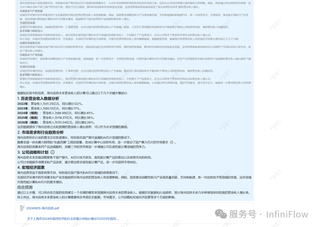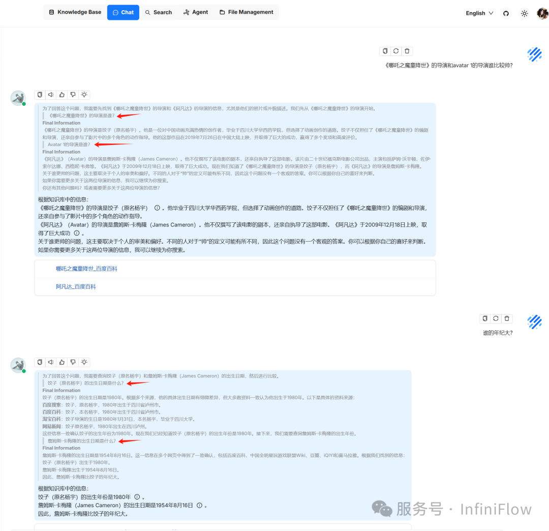 通过 RAGFlow 的 Deep Research 类工作,已经可以将 LLM 的推理能力,真正面向企业端产生一些实际的价值。例如我们可以利用它,结合健康数据,病例等给出诊断建议类报告;可以利用它,结合经营数据,运营数据,给出企业商业辅助决策;可以利用它,结合规章制度,案例给出判定决策辅助... 等等诸如此类。如果说过去的 RAG ,仍然停留在知识库,问答,客服等浅层应用,那么今天的 RAG,已经开启了辅助决策的大门。在去年底 Claude 的博文中曾经断言,Agent 的价值还未充分发挥,因此实际场景中工作流采用更多。这个断言,随着推理能力的落地和进化,必定会发生变化——让 LLM 的思考,充分发挥决策,而尽力减少人工的编排和 Plan,是真正让 AI 走向普适的标志,这个标志今天已经出现,并且今年会加速进化。这也是为何 RAGFlow 如此快速推出推理能力的主要原因。推理 + 搜索,这就是 AI 服务企业的核心依托, |