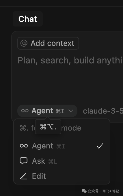 这个是新版本 UI 搞得鬼,Chat和 Composer 合二为一了。简单来说,Agent 模式对应原来版本 Composer 的 agent 模式;Ask 模式对应原来的Chat 功能;Edit 模式对应这 Composer 的 normal 模式。