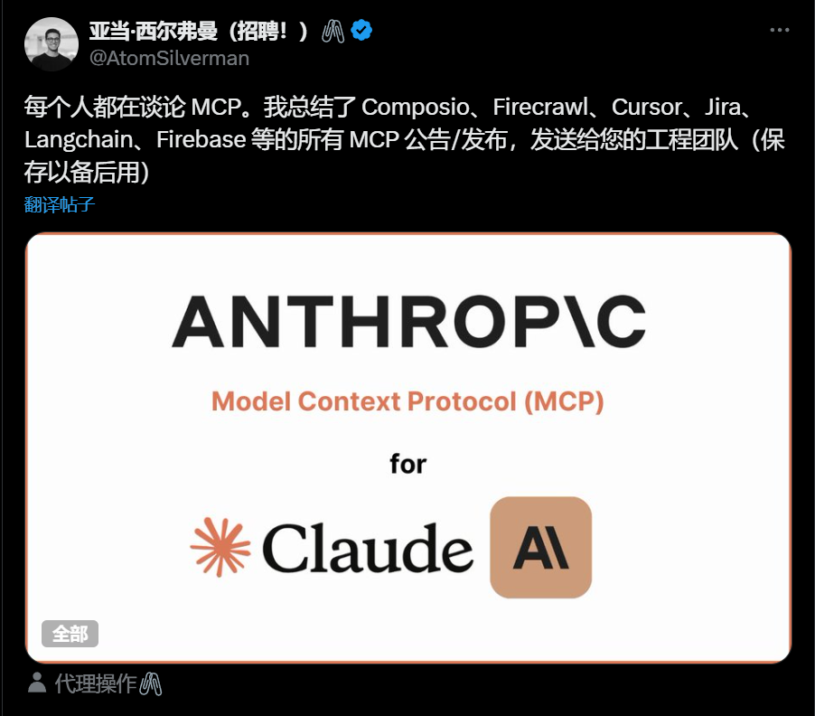 此外,网上也有博主对MCP这样的协议的未来非常看好: