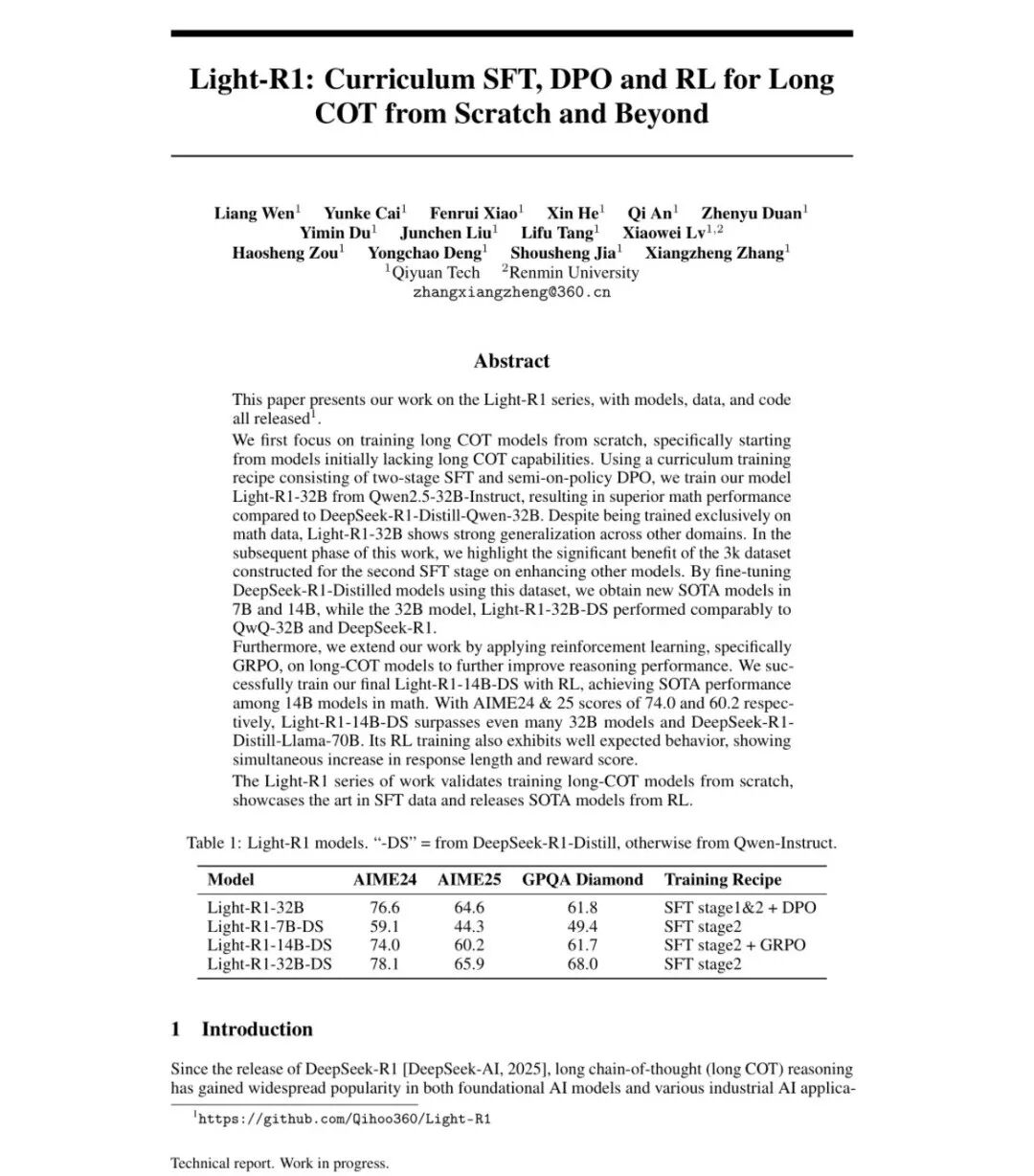 Light-R1系列何以成「最强」: 多项技术突破,低成本复现DeepSeek-R1
