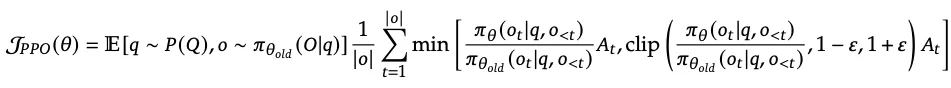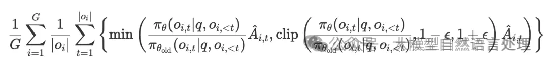 这一部分的目标是通过策略梯度调整,使策略在有利动作()上提高概率,在不利动作()上降低概率。为了避免更新过于激进,GRPO引入了剪切机制。