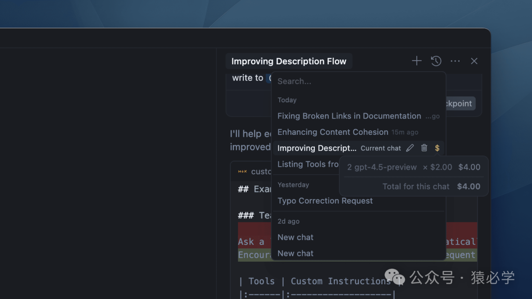 对于基于使用的模型,您现在可以从历史记录中查看每次聊天的成本和细分。