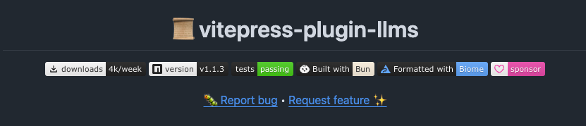 • vitepress-plugin-llms 官方文档https://github.com/okineadev/vitepress-plugin-llms