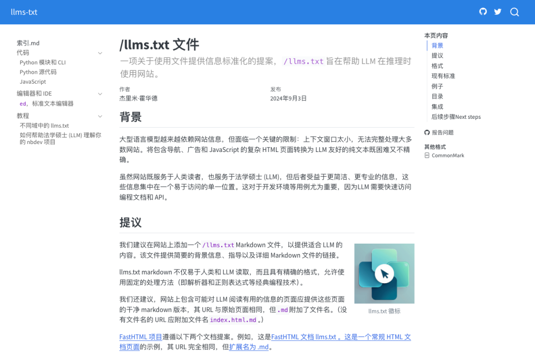 llms.txt是一种新的网站标准,建议在网站根目录放置一个名为llms.txtMarkdown文件。