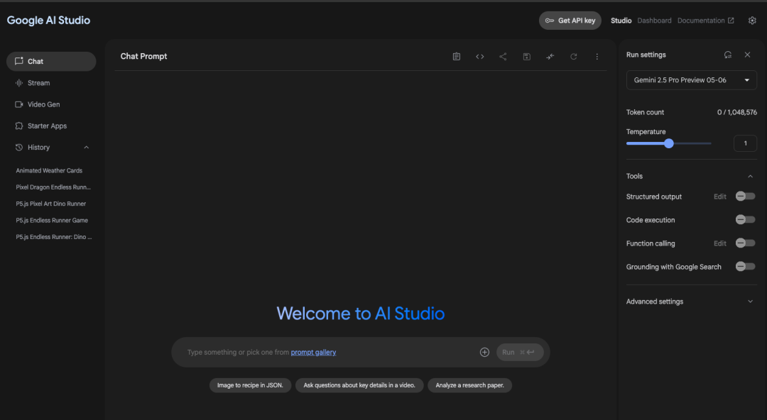 访问https://aistudio.google.com/prompts/new_chat如下界面所示: