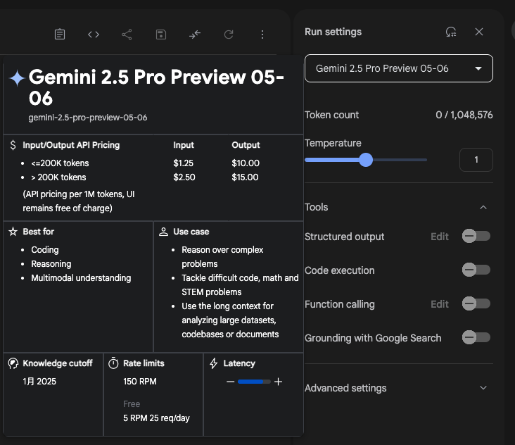 根据官方最新信息,Gemini 2.5 Pro Preview 05-06的定价如下: