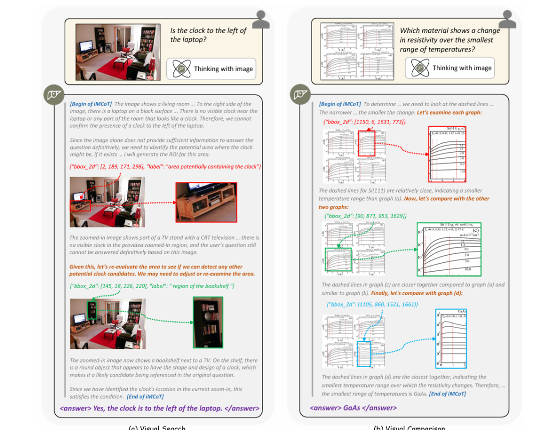 论文提到动机是基于一个观察:人在面对一个视觉问题时,绝对不是看一眼图,然后就在脑子里疯狂进行文本推理。而是会边看边想,甚至有些天生具备“视觉思维”的大佬,他们思考的主要方式就是图像和视觉化的。