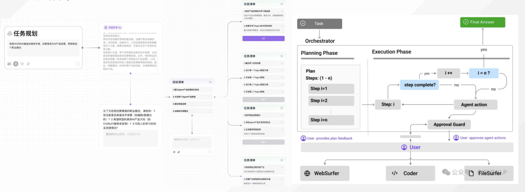 激进路线,就是全放开让大模型去做Agent,但这块容易受到通用性的挑战,也需要做大量的prompt工程或者流程设计,例如manus等为代表。