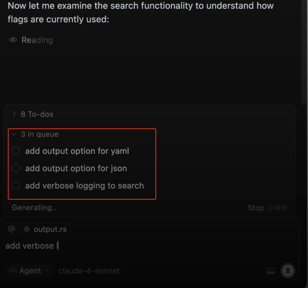 这个改进让交互变得更流畅。你不用再停下来等待 AI。你可以把自己的想法和指令一次性发出去。然后去做别的事情。Agent 会在后台按顺序处理它们。