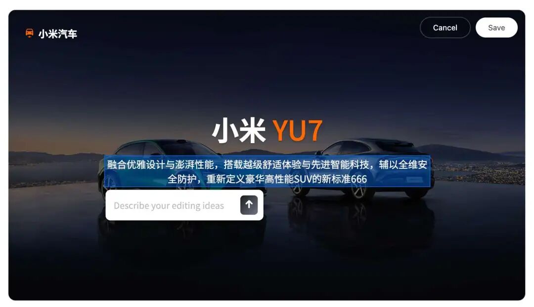 开启 AI Slides,我让它生成一个小米 Yu7 的 10 页 PPT。