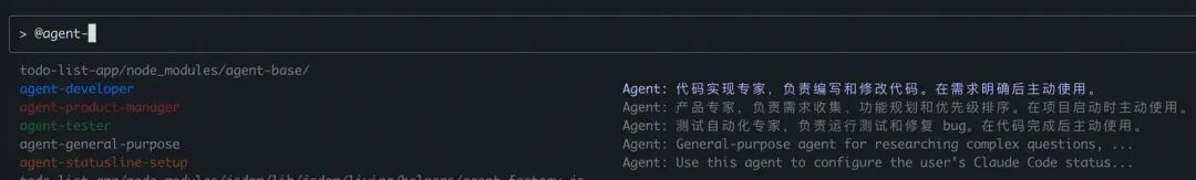 输入@agent-可以召唤出可用的 Subagents 列表,界面选择合适的进行使用。