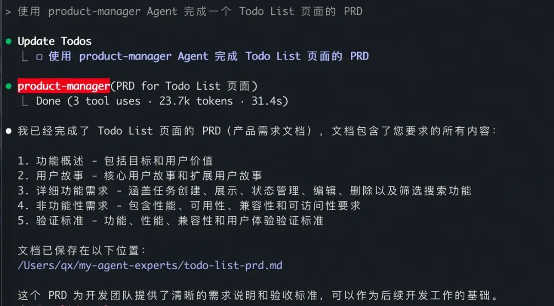 2.**@product-manager**- 产品经理代理 - 专门负责需求收集、功能规划、优先级排序 - 适用场景:需求分析、功能设计、用户故事编写、产品规划