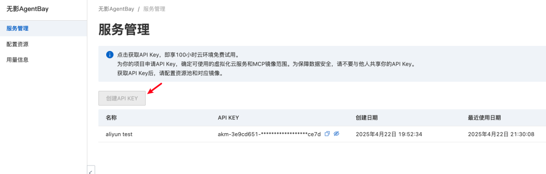 过去企业要用 AI,得先投入大量资源:采购服务器、搭建环境、雇工程师。现在,只需在 AgentBay 申请一个 API KEY,就能像交电费一样,按需购买“智能体工时”,即开即用,无需运维。