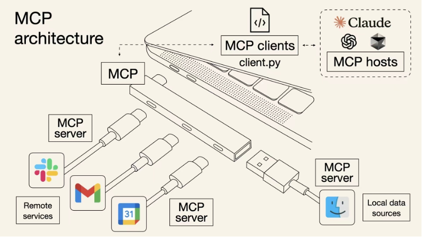 MCP 由多个 MCP 服务器(MCP Server)组成,每个 Server 负责特定任务,例如: