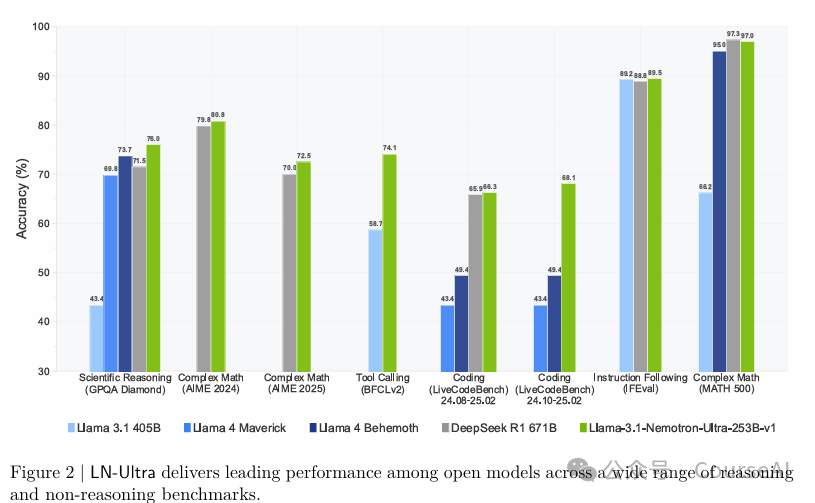 大规模强化学习- 对于 LN-Ultra,采用 Group Relative Policy Optimization(GRPO)算法进行强化学习,以提升科学推理能力。
