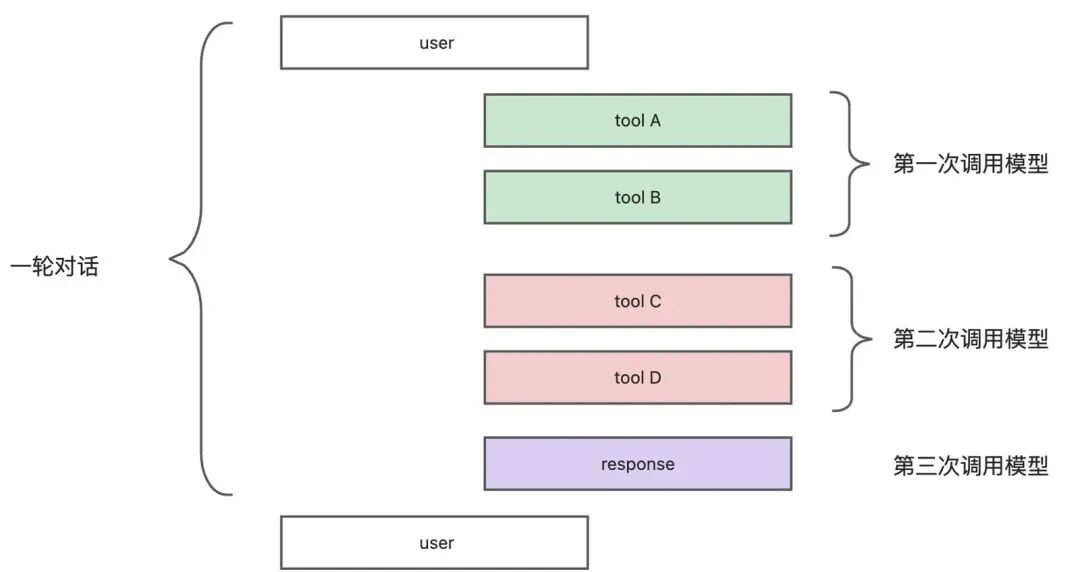 复制工作流模板,支持自定义 ingFang SC", "Microsoft YaHei", STHeiti, Helvetica, Arial, sans-serif, "Apple Color Emoji";font-style: normal;font-variant-caps: normal;letter-spacing: normal;text-indent: 0px;text-transform: none;white-space: pre-wrap;word-spacing: 0px;text-size-adjust: auto;-webkit-text-stroke-width: 0px;text-decoration: none;text-align: justify;">并行调用配置从上面模型选择的界面可以看到,我们打开了并行工具调用,在模型的一次调用中可以输出多个工具。 什么是并行调用 如下图,tool A 和 tool B 是调用一次模型,输出了两个工具,模型在输出 tool B 的时候并不会拿到 tool A 的执行结果,这种情况就是并行调用,适合没有依赖关系的工具调用。 ingFang SC", "Hiragino Sans GB", "Microsoft YaHei UI", "Microsoft YaHei", Arial, sans-serif;background-color: rgb(255, 255, 255);">例如用户问「北京和上海哪里比较热」,模型可以并行调用两次天气工具。第二次调用模型输出 tool C 的时候,模型的上下文已经拿到了 tool A 和 tool B 工具的执行结果,这种情况适合工具之间有依赖的场景。 例如用户问「蚂蚁A空间附近有什么好吃的」,模型需要先调用坐标转换工具获取 A 空间的经纬度,再调用周边搜索工具。
