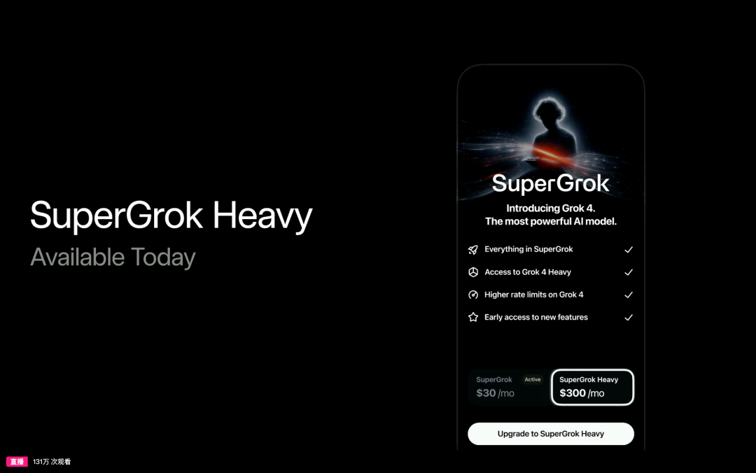 宣布推出“SuperGrok Heavy”付费等级(每月300美元)。该版本允许用户调用 Grok 4 Heavy,它会像一个“学习小组”一样,并行启动多个智能体(Agents)共同解决复杂问题,通过比较和筛选,最终得出最佳答案。