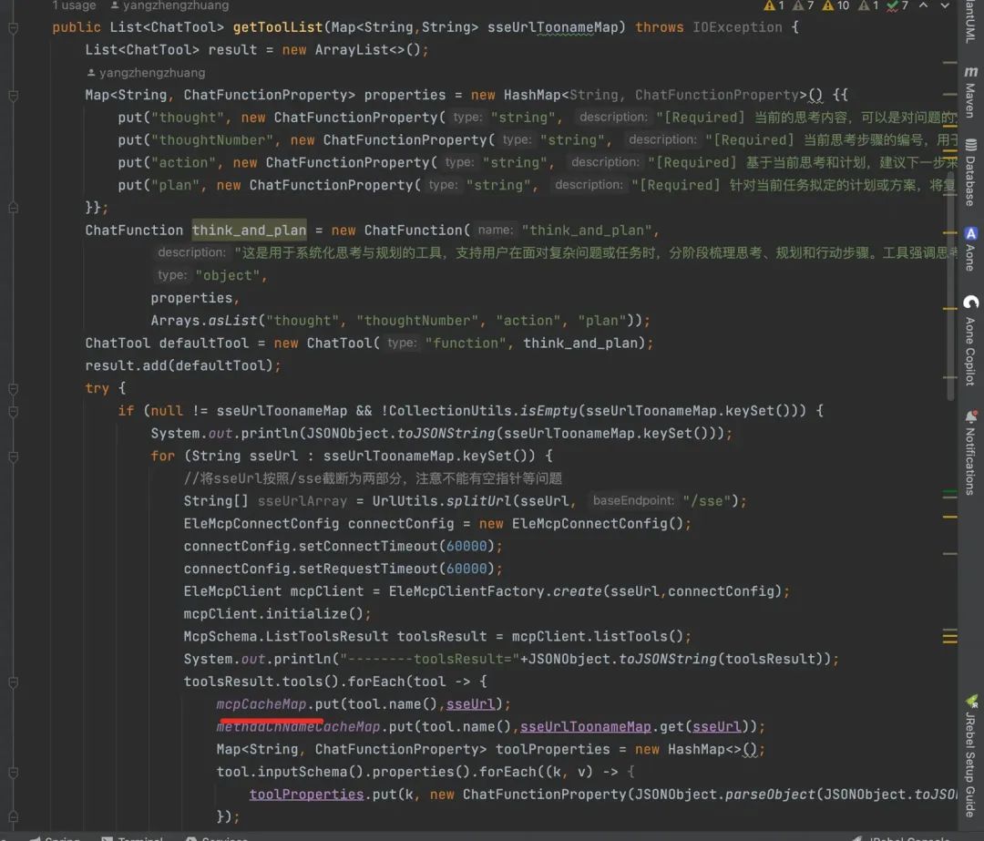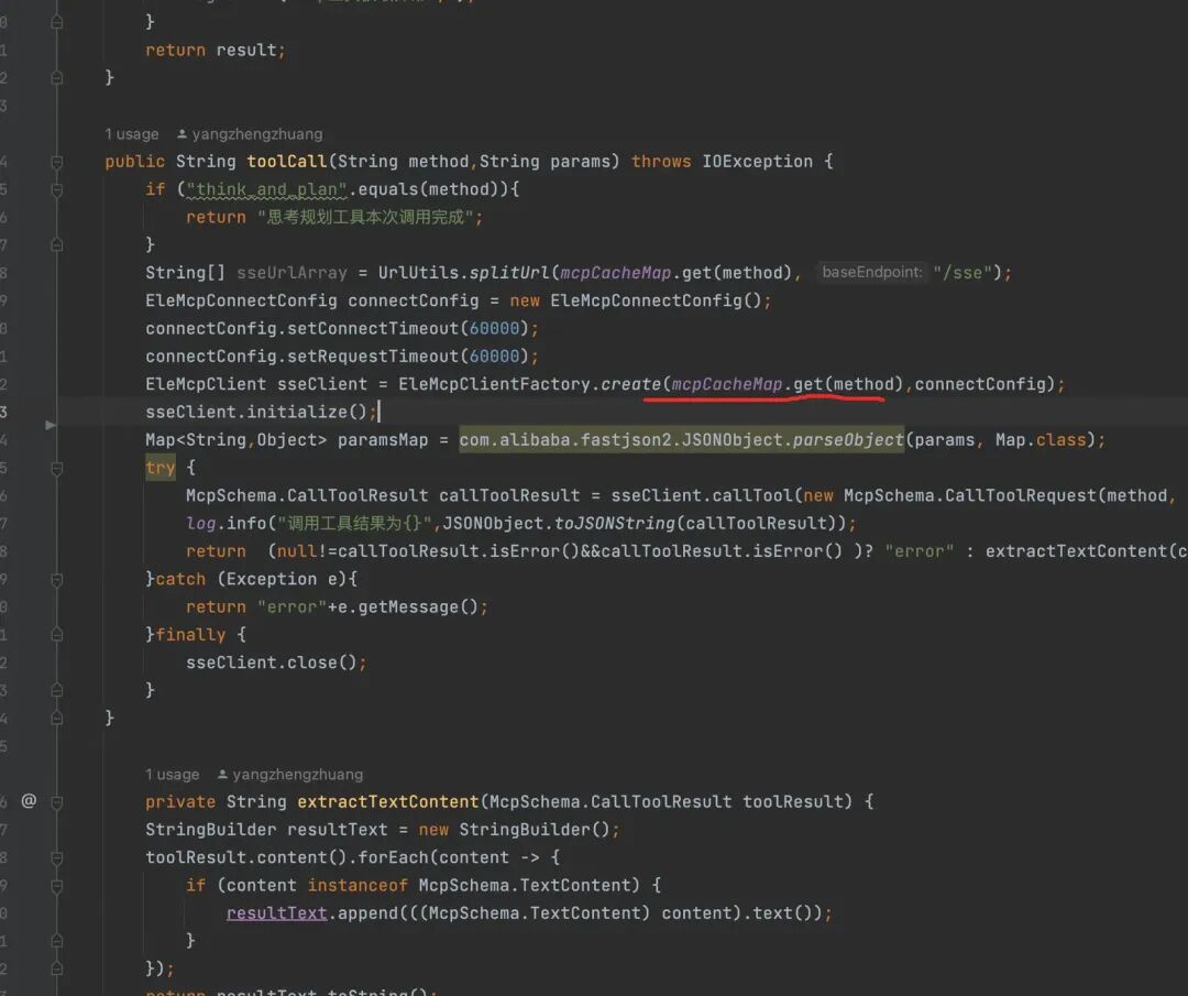 技术选型技术选型上我最终使用的是elemMcpClient+多平台LLM调用客户端。 那为什么这样选择,不直接使用springAI已经封装好的工具调用,或者使用原生McpSdk,还要自己手撸呢: 1.springAI本身集成了上下文管理、工具调用等能力,理论上直接用来做模型调用是很方便,但是: a.中间过程交互不够友好,对于个人开发者来说,springAI确实比较方便,绑定一堆工具、配置好模型地址和ak,输入一个提问,直接能返回意图分类后工具的执行结果,但是我们是平台开发者,我们需要将中间过程做封装交互展示。 b.springAI虽然可以设置中断,只返回该调用哪个工具,把工具的执行交给开发者,但这里也有点坑,有些情况不能返回选择了哪个工具,而且,那这样的话,springAi的价值也大打折扣,仅被当成一个LLM调用的客户端......