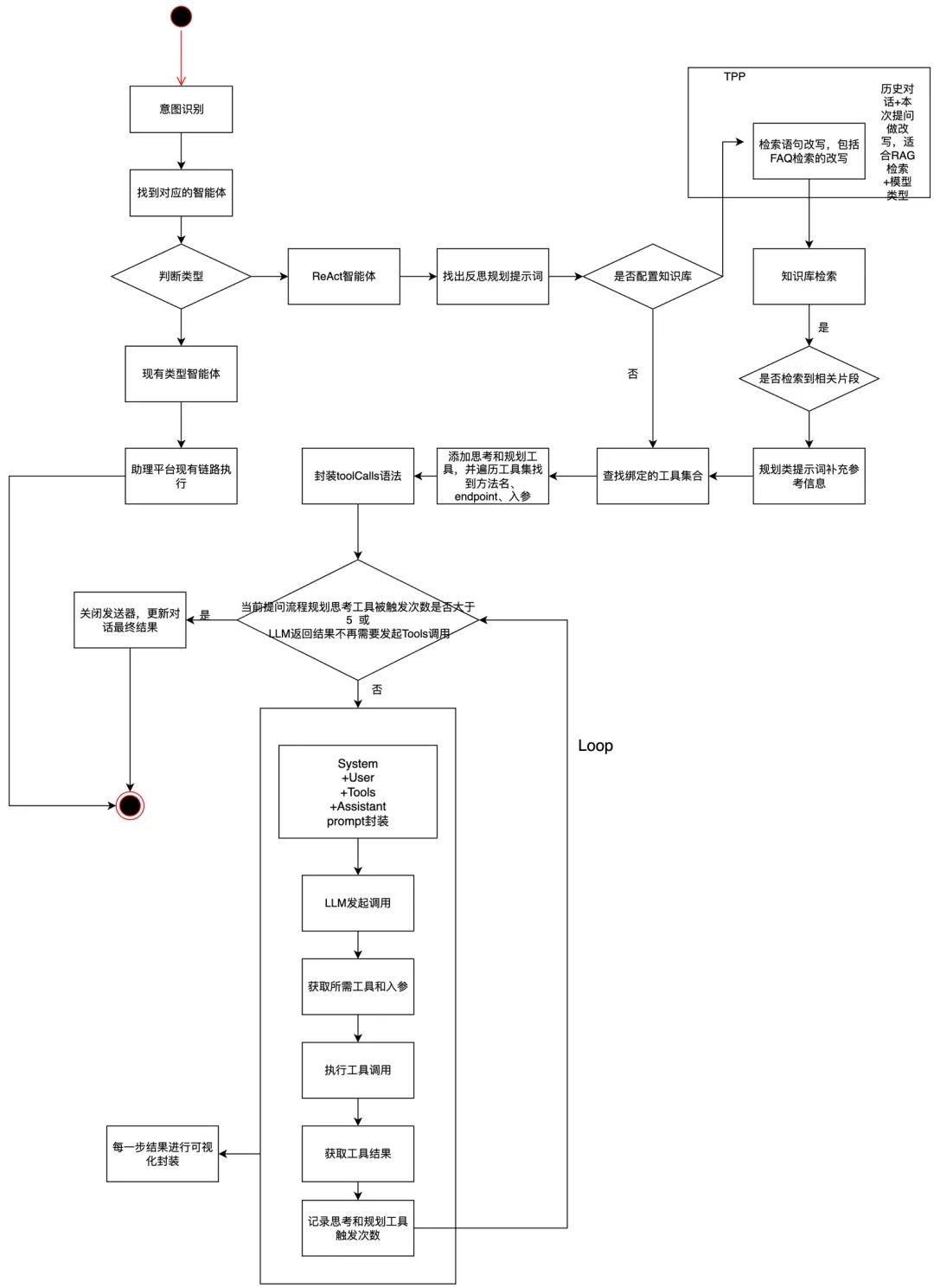 对于React,大家都有自己的理解。本文主要介绍我们是如何实现React框架,关于智能体React模式简单仅做个人简单的一些理解。 1.首先LLM需要不断和环境作出反馈和判断,制定下一步的执行策略。这里的环境即工具列表、对话上下文、一些系统变量。