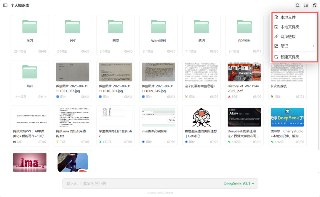 此次版本升级,没有特别的功能需要说明的。不过ima官网最近的推文都是知识库落地的一些实际案例。现在正是开学季,不少中小学校建立自己的题库,通过ima生成不同的试卷;有些大学建立后勤服务资料,通过ima给新生提供各种信息咨询等。从这些案例中可以看出,ima知识库的基本功能差不多了,已经开始提供实实在在的使用价值了。 |