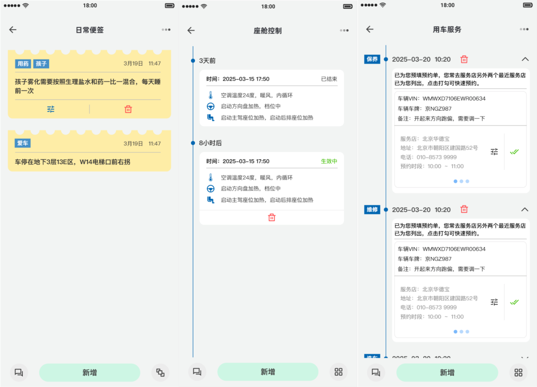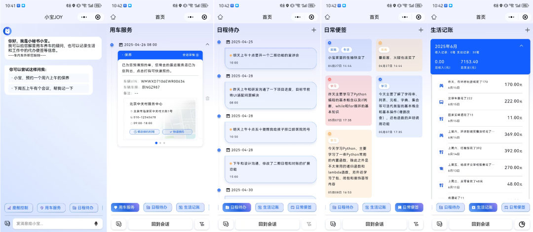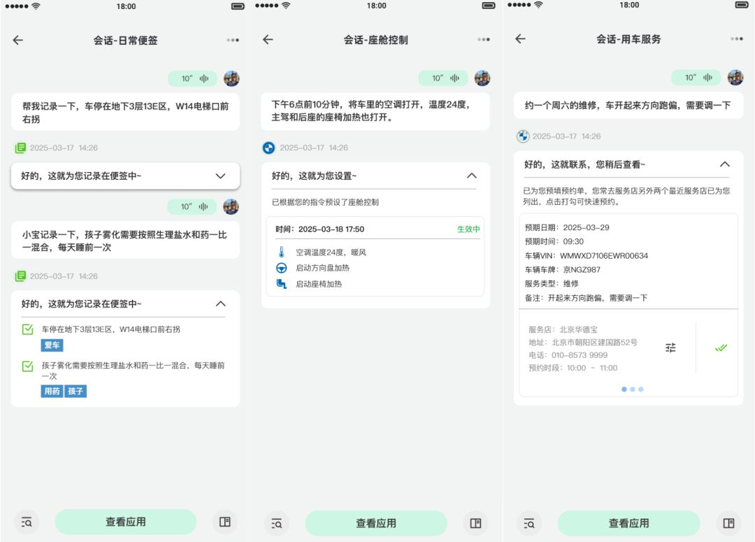 上图智能体的手机端(小程序),用户在车内发出的便签、日程、记账、服务预约等信息都会通过云端同步到手机端,未来有机会通过宝马的app写入用户手机系统的日历;