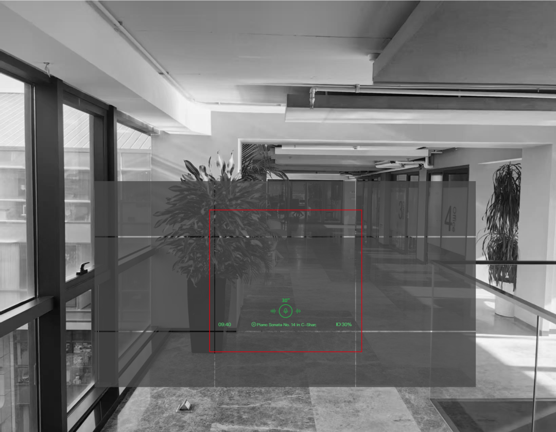 在用户正视视野下,眼前仅仅显示正视区域的组件,如果用户长按触控板会启动录音,同时视野中会有提示显示。