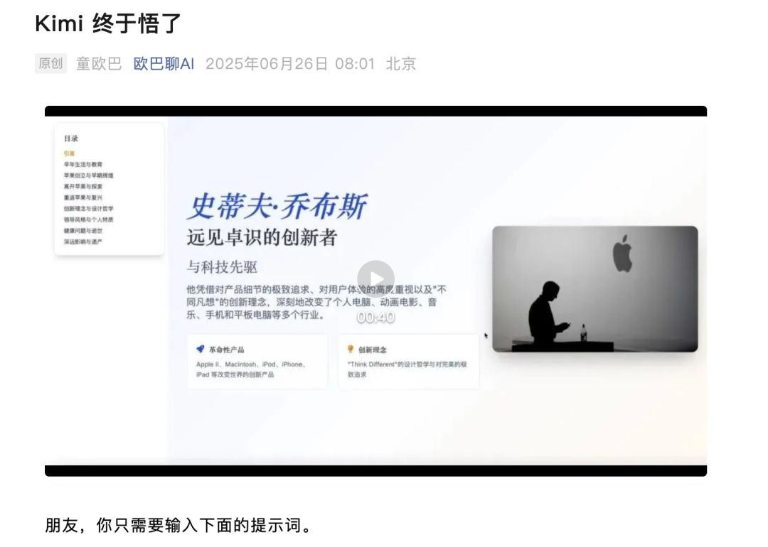 我之前写过一篇文章,(猛戳回顾👉)Kimi 终于悟了,专门说过。