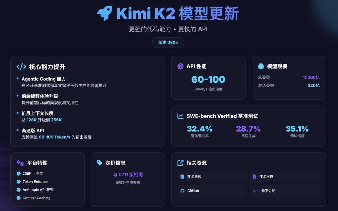 名字叫 Kimi-K2-0905,后面跟着的是发布日期。