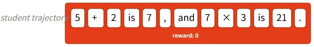 学生模型解一道数学题,最终答案“21”是错的。RL 只反馈“错误”(一个标量奖励),而学生并不知道是运算顺序错了,还是计算本身错了。