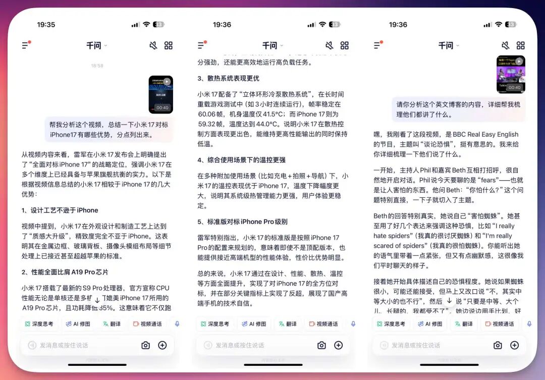 而且千问在多模态、文档阅读、会议纪要等“助手”能力上的完善,使其在综合产品体验上更像是一个产品。